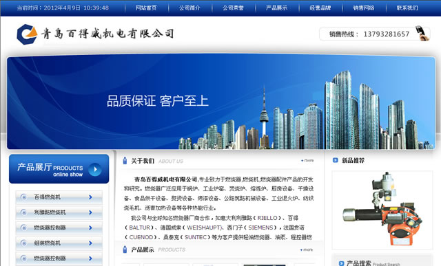 青島百得威機電有限公司,(www.sdbaidewei.com)專業致力于燃燒器,燃燒機,燃燒器配件產品的開發和研究。燃燒器廣泛應用于鍋爐、工業爐窯、焚燒爐、熔煉爐、廚房設備、干燥設備、食品烘干設備、熨燙設備、烤漆設備、公路筑路機械設備、工業退火爐、紡織燒毛機、瀝青加熱設備等各種熱能行業。 我公司與全球知名燃燒器廠商合作,如意大利利雅路(RIELLO)、百得(BALTUR)、德國威索(WEISHAUPT)、西門子(SIEMENS),法國貴諾(CUENOD)、桑泰克(SUNTEC)等為客戶提供輕油燃燒器、油泵、程控器燃氣燃燒器、火焰探測器、燃氣電磁閥等燃燒器配件。同時,我們帶來的不僅是國外高性能的產品和優質的服務。更重要把節能和環保的理念帶到中國,開創綠色燃燒時代。使自己成為熱能技術、控制技術和調控技術方面的專家。 我公司致力于在產品、服務、工作中追求盡善盡美、精益求精,讓精細化的服務與管理無所不在、無微不致。客戶的滿意就是我們的追求。 |